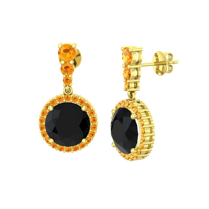 Siyah zirkon ve sitrin 8 ayar altın küpe