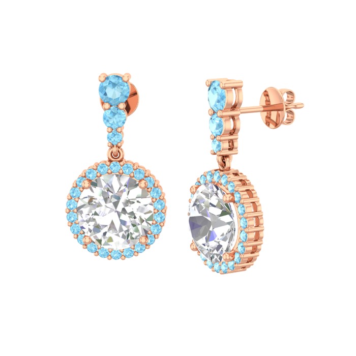 Swarovski ve akuamarin 18 ayar rose altın küpe