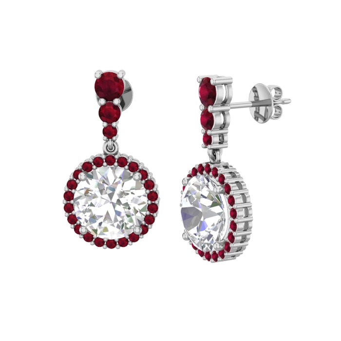 Swarovski ve kök yakut 18 ayar beyaz altın küpe