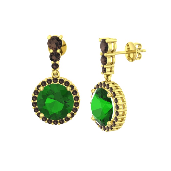Yeşil kuvars ve dumanlı kuvars 18 ayar altın küpe
