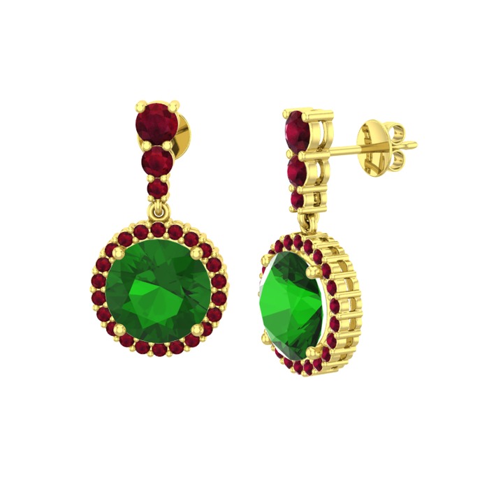 Yeşil kuvars ve kök yakut 8 ayar altın küpe