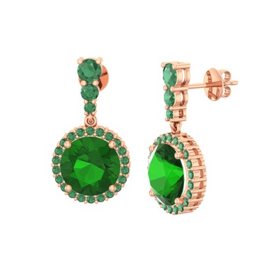 Yeşil kuvars ve kök zümrüt 18 ayar rose altın küpe