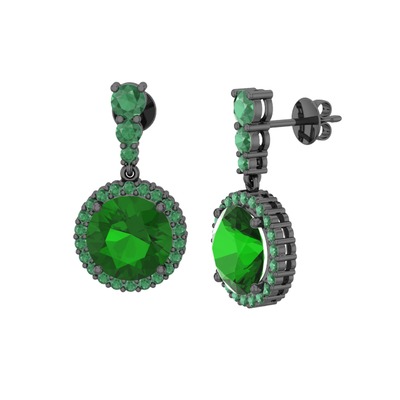 Yeşil kuvars ve kök zümrüt 925 ayar siyah rodyum kaplama gümüş küpe