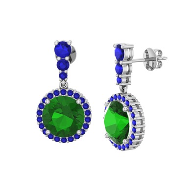 Yeşil kuvars ve lab safir 8 ayar beyaz altın küpe