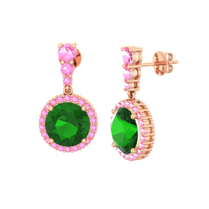 Yeşil kuvars ve pembe kuvars 8 ayar rose altın küpe