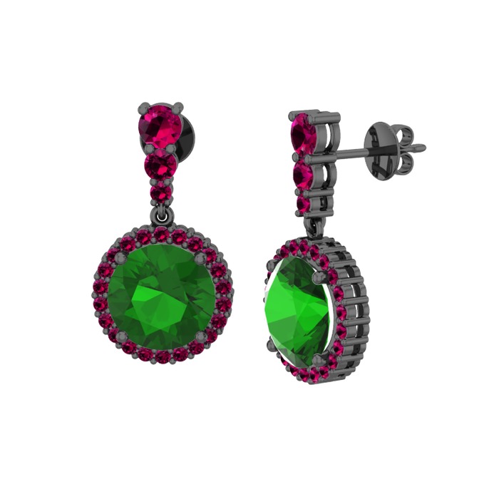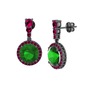 Yeşil kuvars ve rodolit garnet 925 ayar siyah rodyum kaplama gümüş küpe