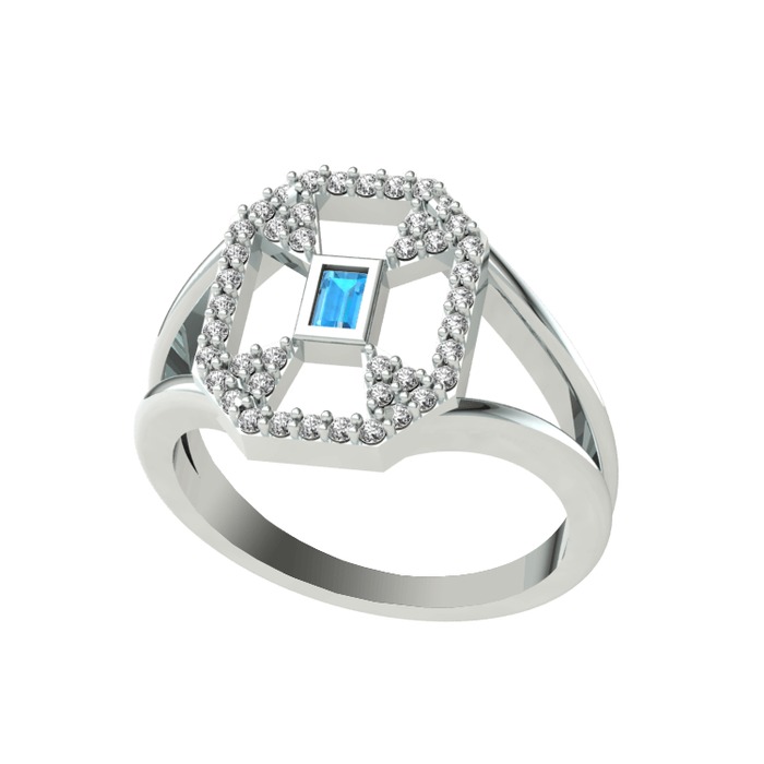 Akuamarin ve beyaz zirkon 925 ayar gümüş yüzük