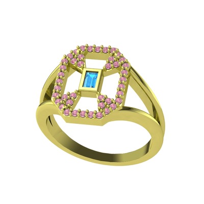 Akuamarin ve pembe kuvars 14 ayar altın yüzük