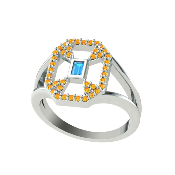 Akuamarin ve sitrin 18 ayar beyaz altın yüzük