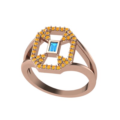 Akuamarin ve sitrin 925 ayar rose altın kaplama gümüş yüzük
