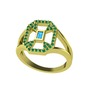 Akuamarin ve yeşil kuvars 14 ayar altın yüzük