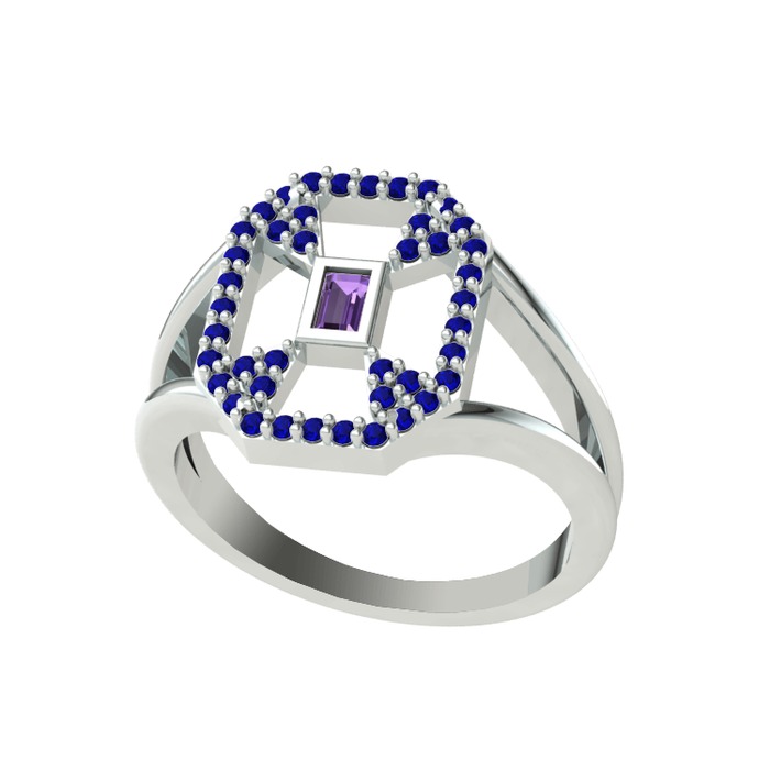 Ametist ve lab safir 8 ayar beyaz altın yüzük