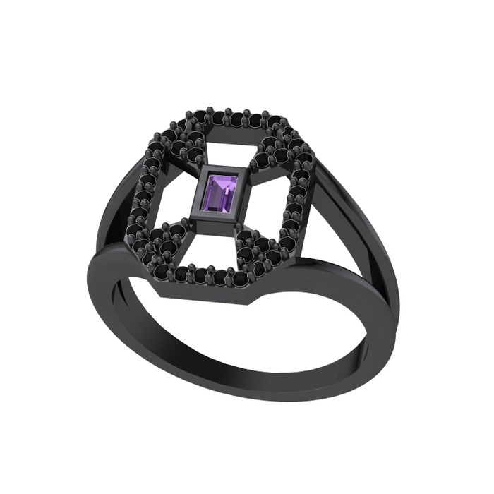 Ametist ve siyah zirkon 925 ayar siyah rodyum kaplama gümüş yüzük