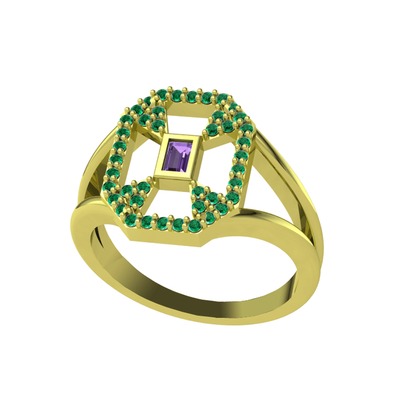 Ametist ve yeşil kuvars 8 ayar altın yüzük
