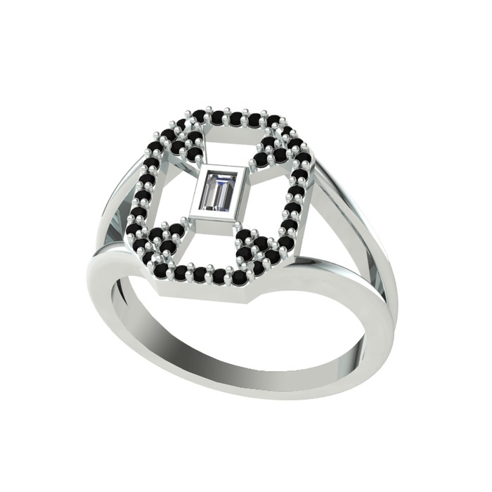 Beyaz zirkon ve siyah zirkon 925 ayar gümüş yüzük