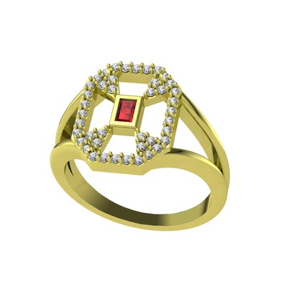 Garnet ve beyaz zirkon 18 ayar altın yüzük