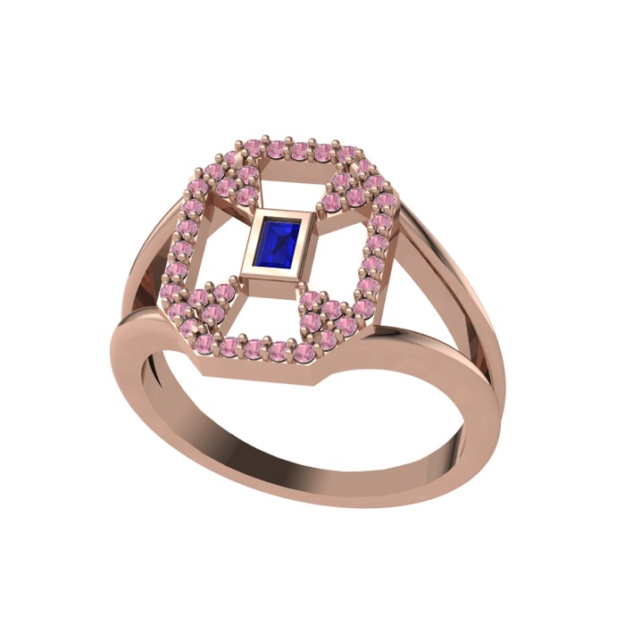 Lab safir ve pembe kuvars 925 ayar rose altın kaplama gümüş yüzük