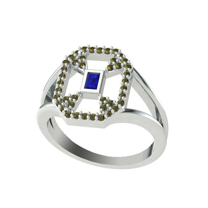 Lab safir ve peridot 925 ayar gümüş yüzük