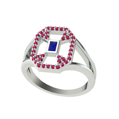 Lab safir ve rodolit garnet 14 ayar beyaz altın yüzük
