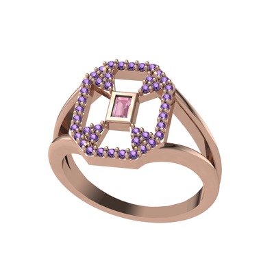 Pembe kuvars ve ametist 8 ayar rose altın yüzük