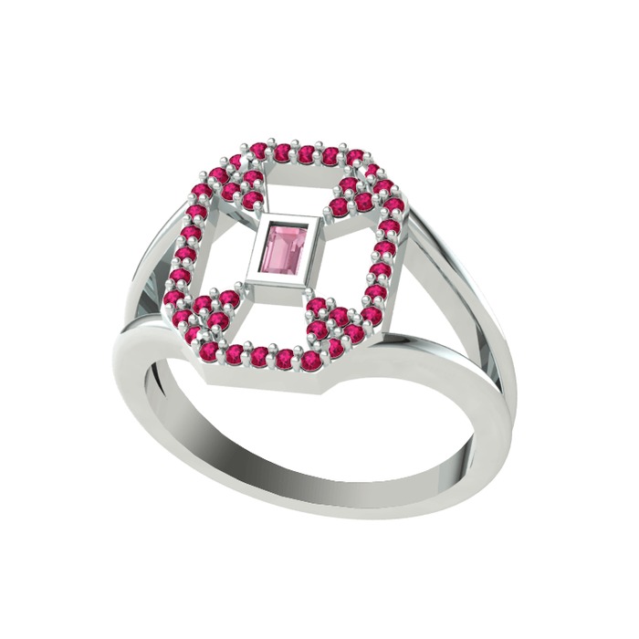 Pembe kuvars ve rodolit garnet 925 ayar gümüş yüzük