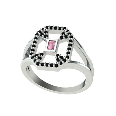 Pembe kuvars ve siyah zirkon 925 ayar gümüş yüzük