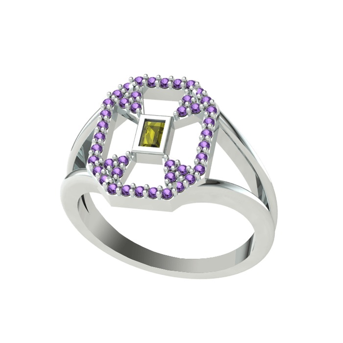 Peridot ve ametist 8 ayar beyaz altın yüzük