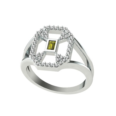 Peridot ve beyaz zirkon 925 ayar gümüş yüzük
