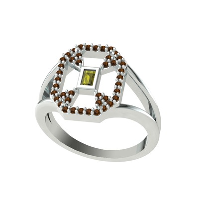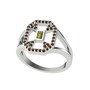 Peridot ve dumanlı kuvars 14 ayar beyaz altın yüzük