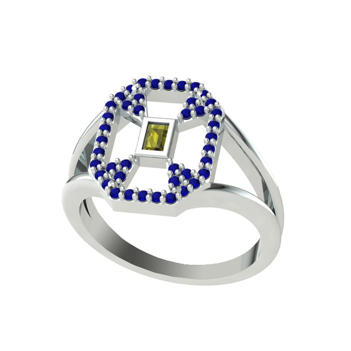 Peridot ve lab safir 14 ayar beyaz altın yüzük