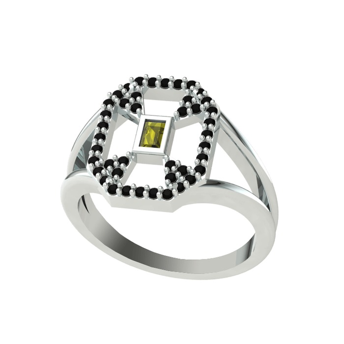 Peridot ve siyah zirkon 925 ayar gümüş yüzük