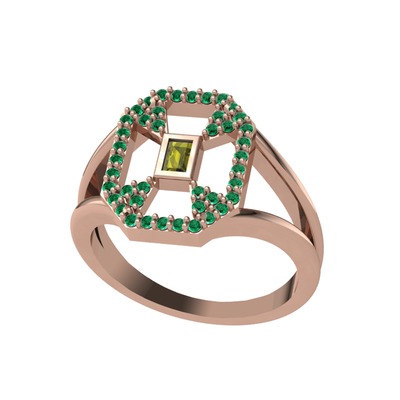 Peridot ve yeşil kuvars 8 ayar rose altın yüzük