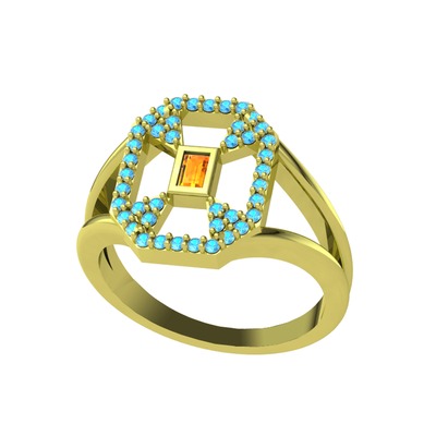 Sitrin ve akuamarin 8 ayar altın yüzük