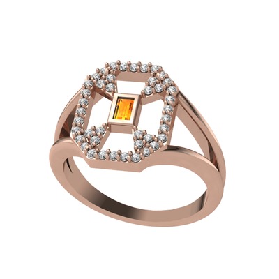 Sitrin ve beyaz zirkon 18 ayar rose altın yüzük