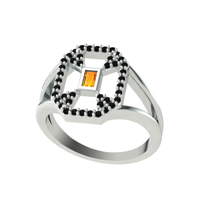 Sitrin ve siyah zirkon 14 ayar beyaz altın yüzük