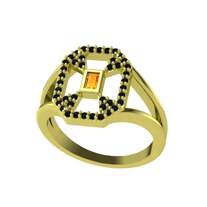 Sitrin ve siyah zirkon 925 ayar altın kaplama gümüş yüzük