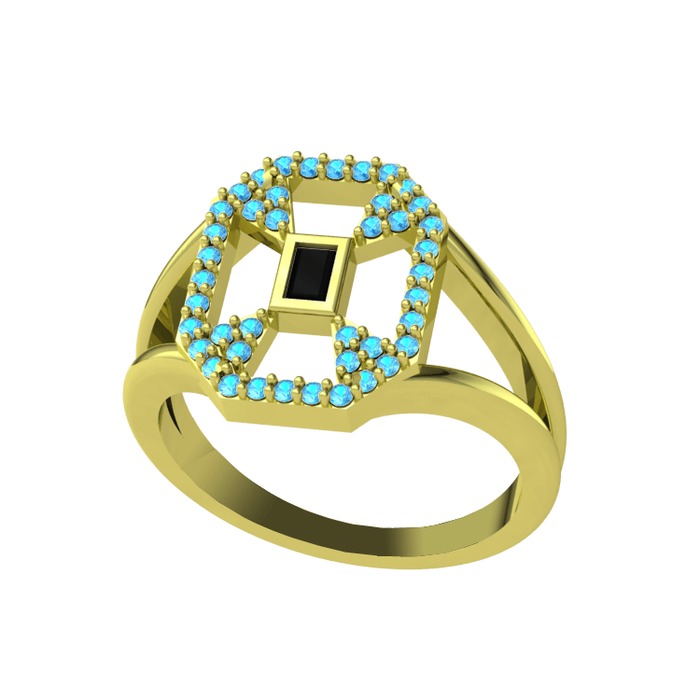 Siyah zirkon ve akuamarin 14 ayar altın yüzük