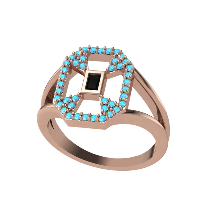 Siyah zirkon ve akuamarin 18 ayar rose altın yüzük