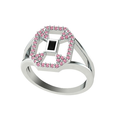 Siyah zirkon ve pembe kuvars 14 ayar beyaz altın yüzük