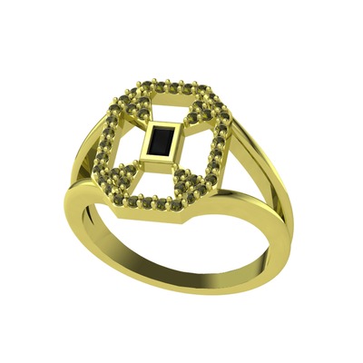 Siyah zirkon ve peridot 925 ayar altın kaplama gümüş yüzük