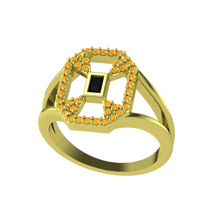 Siyah zirkon ve sitrin 14 ayar altın yüzük