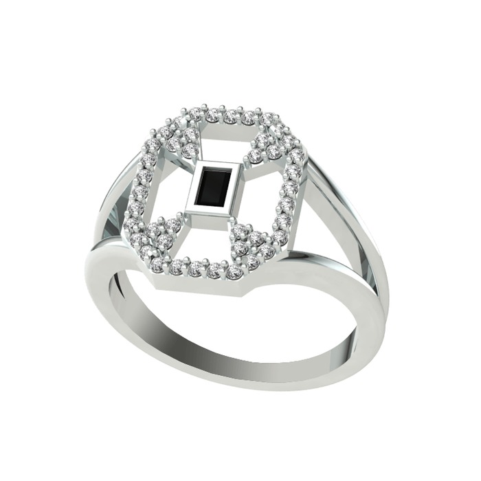 Siyah zirkon ve swarovski 14 ayar beyaz altın yüzük