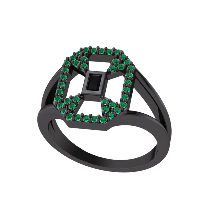 Siyah zirkon ve yeşil kuvars 925 ayar siyah rodyum kaplama gümüş yüzük
