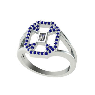 Swarovski ve lab safir 14 ayar beyaz altın yüzük