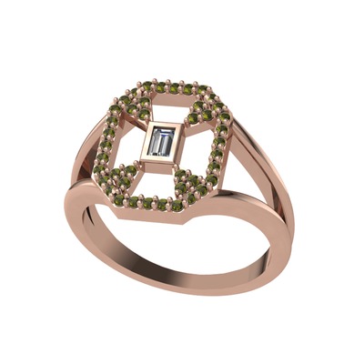 Swarovski ve peridot 8 ayar rose altın yüzük