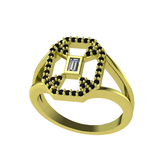 Swarovski ve siyah zirkon 14 ayar altın yüzük