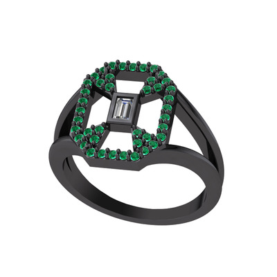 Swarovski ve yeşil kuvars 925 ayar siyah rodyum kaplama gümüş yüzük