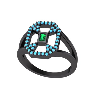 Yeşil kuvars ve akuamarin 925 ayar siyah rodyum kaplama gümüş yüzük