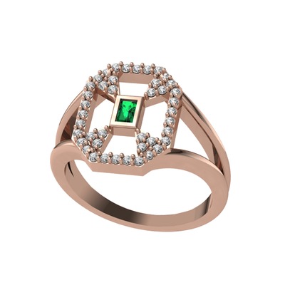 Yeşil kuvars ve beyaz zirkon 14 ayar rose altın yüzük