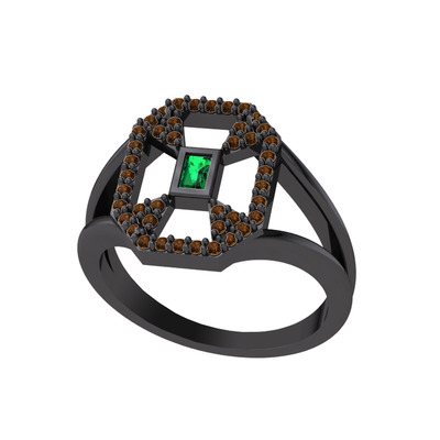 Yeşil kuvars ve dumanlı kuvars 925 ayar siyah rodyum kaplama gümüş yüzük